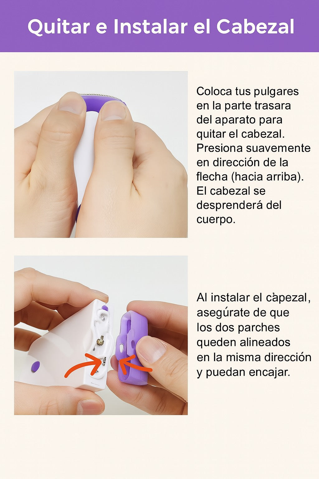 Es perfecta para eliminar vellos diminutos en áreas sensibles como las piernas, rebaje, cola, brazos, axilas, mejillas, el labio superior, cuello, espalda, y cara.