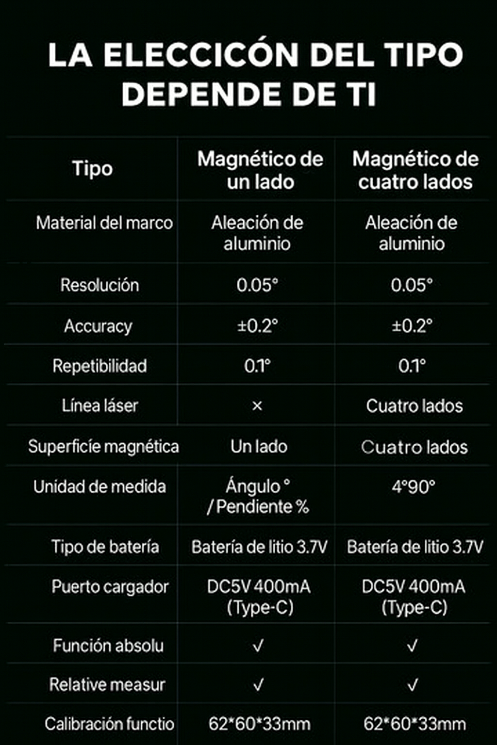 ✅ Lectura Reversible:La pantalla gira automáticamente para que puedas leer el ángulo correctamente sin importar si la herramienta está de frente o al revés.