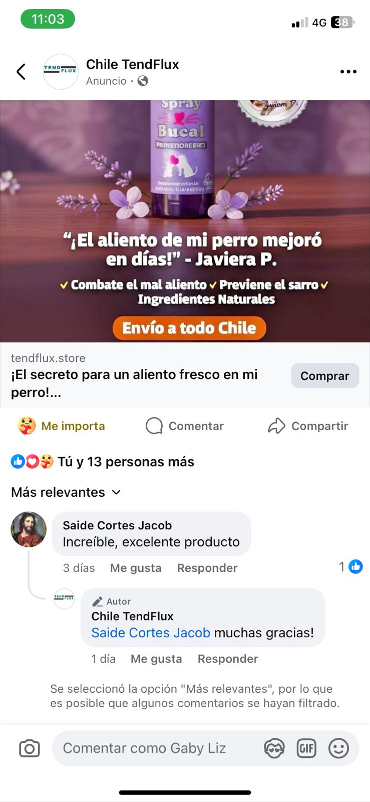“Noté sus encías más sanas y su aliento ha mejorado bastante. La empresa muy amable, la recomiendo."