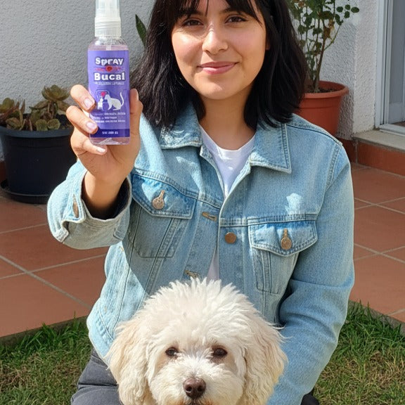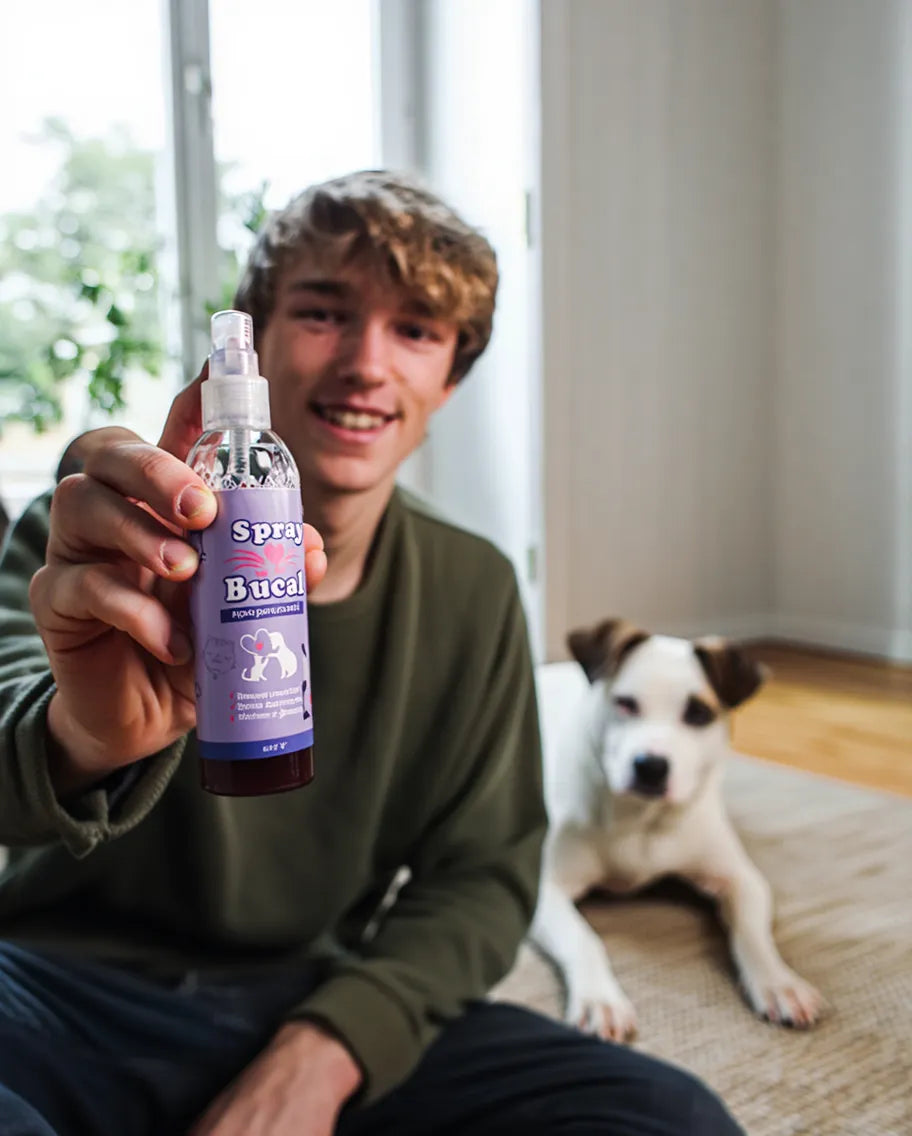 Levanta el labio de tu mascota, aplica un rocío ¡y listo! Nada de peleas con el cepillo.