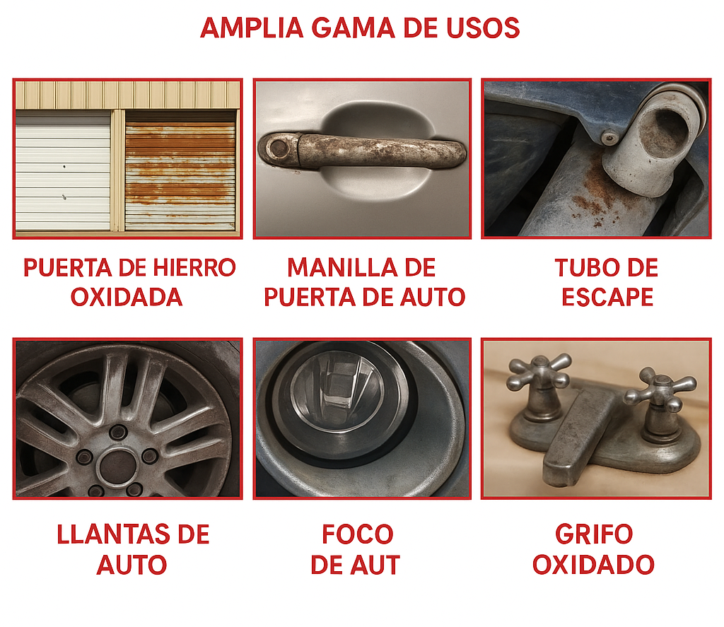 Útil en rejas, bicicletas, autos, piezas mecánicas y más.