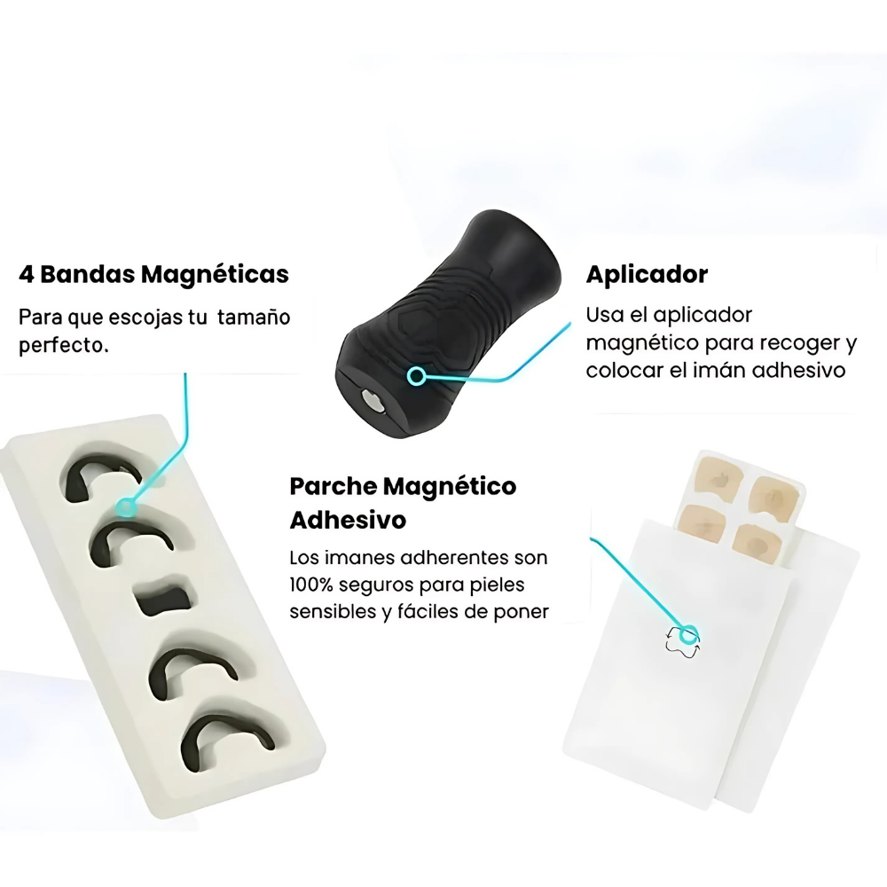 Contenido kit: 4 bandas reutilizables (varios tamaños), 15 pares de repuestos, aplicador magnético.